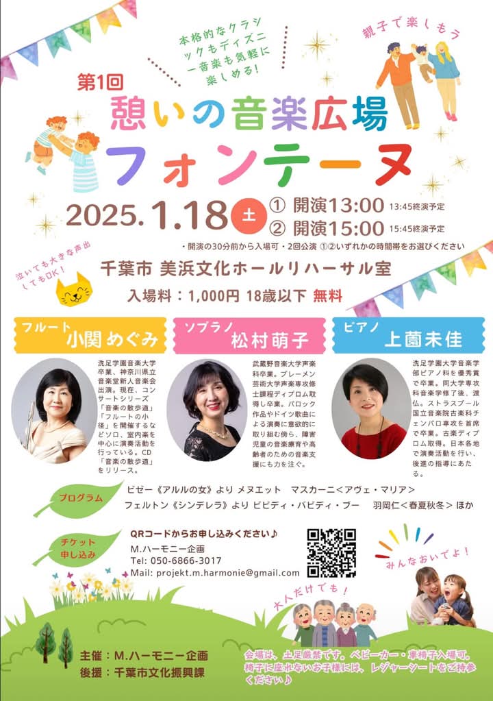 もうすぐですが、1月18日(土)に千葉市美浜文化ホールリハーサル室にてコンサートがあります。