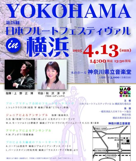 2025年4月5日 フルートアンサンブルエルフ4thConcert 11名のフルート奏者によるフルートアンサンブル 「エルフ」の4回目のコンサートを開催いたします。中田はバスフルートで小関はアルトフルートで出演します。 「エルフ」とはドイツ語で「11」のことでメンバーが11名であることか … Continue reading フルートアンサンブルエルフ4thConcert 11名のフルート奏者によるフルートアンサンブル 「エルフ」の4回目のコンサートを開催いたします。中田はバスフルートで小関はアルトフルートで出演します。 「エルフ」とはドイツ語で「11」のことでメンバーが11名であることか … Continue reading フルートアンサンブルエルフ4thConcert Read More